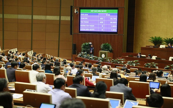 Tiếp đó, Quốc hội tiến hành biểu quyết bằng hệ thống điện tử. Kết quả biểu quyết có 435/453 đại biểu Quốc hội biểu quyết tán thành. Như vậy Quốc hội đã chính thức thông qua Bộ luật Lao động (sửa đổi) gồm 17 Chương và 220 Điều. Theo đó, Bộ luật mới được thông qua sẽ có hiệu lực thi hành từ ngày 1-1-2021, thay thế cho Bộ luật Lao động số 10/2012/QH13 hiện hành (hết hiệu lực).