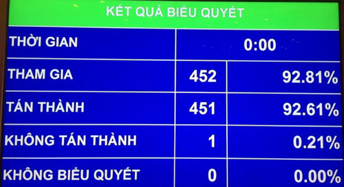 Tiếp tục chương trình Kỳ họp thứ 5, chiều 14/6, với 451/452 phiếu đại biểu tham gia biểu quyết tán thành, chiếm tỷ lệ 92,61%, Quốc hội đã thông qua Luật Đo đạc và bản đồ.