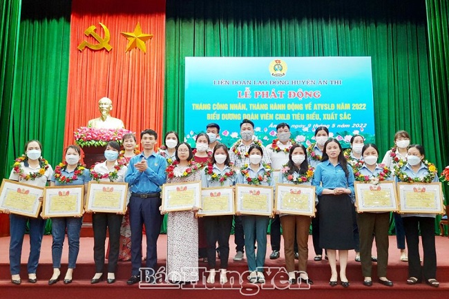 Liên đoàn Lao động huyện Ân Thi biểu dương người lao động tiêu biểu, xuất sắc tại lễphát động “Tháng công nhân” và “Tháng hành động về an toàn, vệ sinh lao động” năm 2022