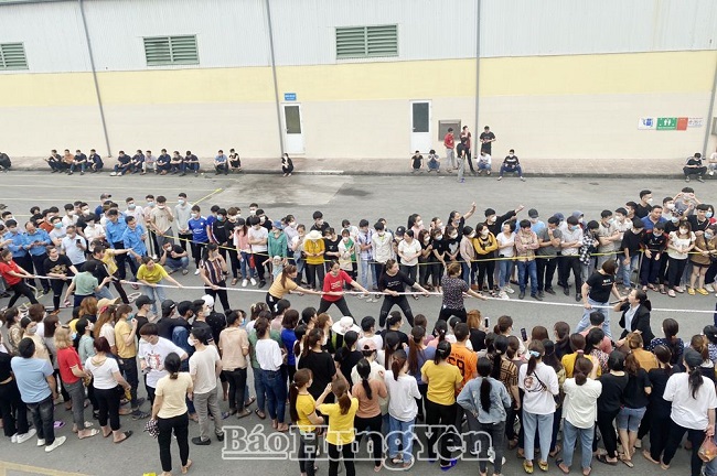 Đoàn viên, người lao động Công ty cổ phần thực phẩm xuất khẩu Trung Sơn Hưng Yên (Văn Lâm) tham gia các hoạt động thể thao do công đoàn tổ chức