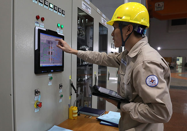 Tập đoàn Điện lực Việt Nam (EVN) đặt mục tiêu phấn đấu đến năm 2022 hoàn thành cơ bản chuyển đổi số và đến năm 2025 trở thành doanh nghiệp hoạt động trên môi trường số (Trong ảnh: Ứng dụng công nghệ số vào công tác vận hành phát điện tại Công ty Thuỷ điện Sơn La)_Ảnh: TTXVN