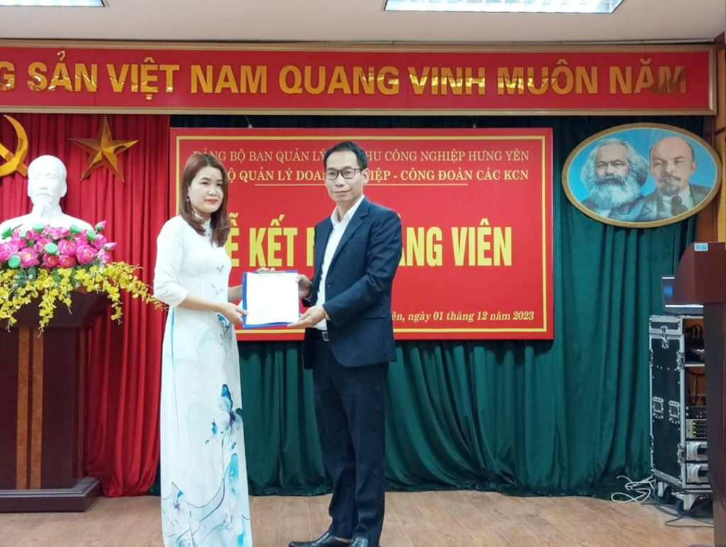 Chi bộ Quản lý Doanh nghiệp – Công đoàn các khu công nghiệp tỉnh tổ chức lễ kết nạp đảng viên đối với quần chúng ưu tú tại doanh nghiệp trong các khu công nghiệp tỉnh