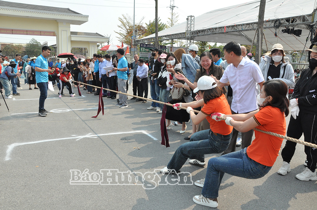 Đông đảo người lao động tham gia hội thi kéo co do Liên đoàn Lao động tỉnh tổ chức.