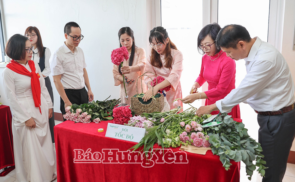 Người lao động Công ty TNHH Traphaco Hưng Yên (xã Như Quỳnh) tham gia hội thi cắm hoa nghệ thuật.