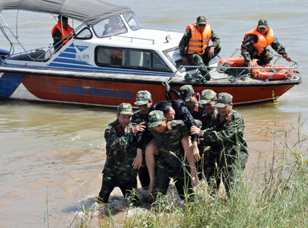 Bên cạnh đó, chỉ đạo bảo đảm an ninh trật tự. Tiếp đó, buổi diễn tập tiến hành thực binh xử lý một số tình huống gồm: Sơ tán nhân dân khu phố Nam Lê Hồng Phong và Bắc Lê Hồng Phong ra khỏi khu vực ngập lụt, nguy hiểm; tìm kiếm cứu nạn trên sông Hồng. Cuộc diễn tập thực binh diễn ra trong gần 1 giờ đồng hồ với hơn 1 nghìn người tham gia theo các tình huống giả định đã thực hiện thành công.