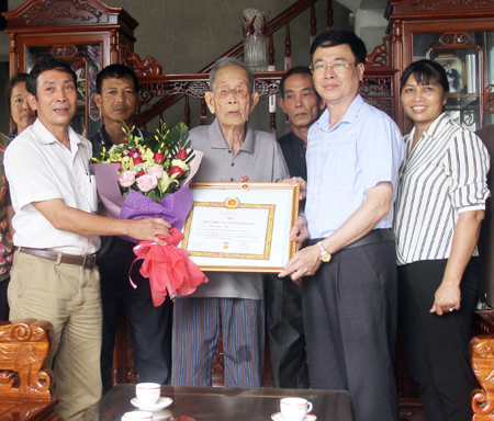 Ngày 29.8, đồng chí Tạ Hồng Quảng, Ủy viên Ban Thường vụ Tỉnh ủy, Bí thư Thành ủy Hưng Yên đã đến trao Huy hiệu 70 năm tuổi Đảng tặng đảng viên Đào Văn Nha, hiện đang sinh sống tại khu phố Xích Đằng, phường Lam Sơn (thành phố Hưng Yên).