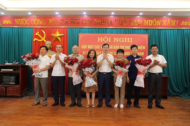 Lãnh đạo huyện Ân Thi tặng hoa chúc mừng các cơ quan báo chí