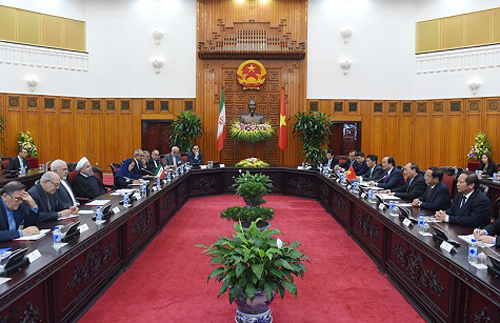 Thủ tướng bày tỏ vui mừng với kết quả cuộc hội đàm giữa Tổng thống Hassan Rouhani và Chủ tịch nước Trần Đại Quang, cũng như những thỏa thuận hai bên đã đạt được trong chuyến thăm, đồng thời cam kết sẽ chỉ đạo các bộ, cơ quan, địa phương của Việt Nam phối hợp chặt chẽ với phía Iran triển khai các cam kết đã được thống nhất, sớm hiện thực hóa mục tiêu đưa kim ngạch thương mại song phương hai nước lên 2 tỷ USD trong thời gian tới.