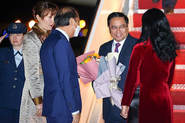Đón Thủ tướng Phạm Minh Chính tại sân bay quân sự Andrew có Đại sứ Hoa Kỳ tại Việt Nam Marc Knapper, Đại sứ Việt Nam tại Hoa Kỳ Nguyễn Quốc Dũng; một số cán bộ, nhân viên Đại sứ quán Việt Nam.