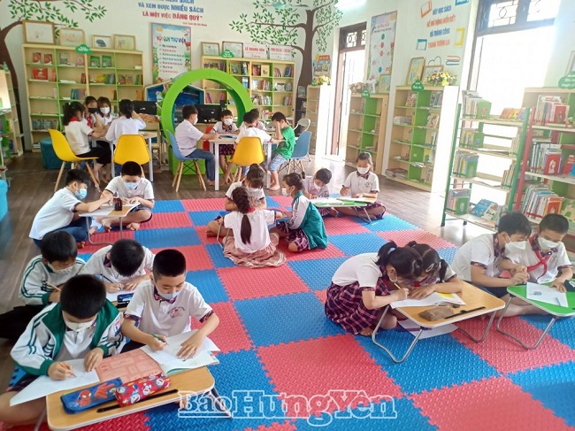 Học sinh trường Tiểu học Hiệp Cường được thư giãn, sáng tạo tại thư viện thân thiện