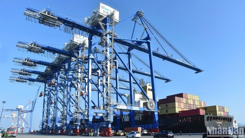 Bốc xếp container hàng hóa tại Cảng Lạch Huyện, Hải Phòng. (Ảnh: TRẦN HẢI)