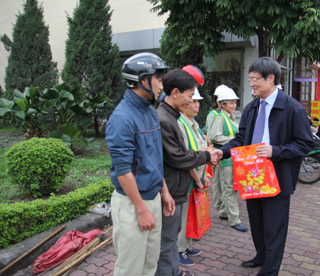 | Đồng chí Nguyễn Khắc Hào tặng quà và chúc tết công nhân Công ty TNHH một thành viên Môi trường và đô thị Hưng Yên |