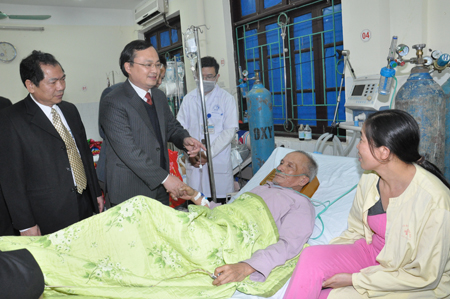 Sau khi chúc tết cán bộ, y sỹ, bác sỹ bệnh viện, Phó Bí thư Tỉnh Uỷ Đỗ Tiến Sỹ đã tới thăm,chúc tết và tặng quà các bệnh nhân đang điều trị tại bệnh viện