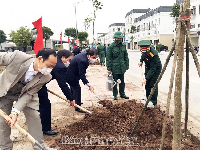 Sau lễ phát động, các đại biểu và lực lượng quân, dân trong huyện đã tham gia trồng cây tại vỉa hè khu Trung tâm Thương mại Tiên Lữ và khu dân cư mới xã Dị Chế.