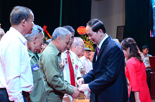Chủ tịch nước Trần Đại Quang tặng quà các gia đình có công với cách mạng tỉnh Lào Cai. (Ảnh: PC)