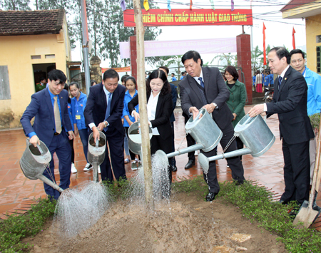 Các đại biểu trồng cây lưu niệm tại nhà trường