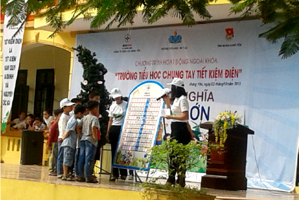 Sau màn biểu diễn văn nghệ chào mừng của thầy và trò Trường Tiểu học An Tảo, các em học sinh của nhà trường đã được các Tuyên truyền viên Công ty Điện lực Hưng Yên tuyên truyền về ý nghĩa, tầm quan trọng của việc sử dụng điện tiết kiệm cũng như cách sử dụng điện tiết kiệm, hiệu quả và hành động bảo vệ hành lang lưới điện… Bên cạnh đó các em còn được tham gia các trò chơi hết sức vui nhộn và lý thú, mang tính giáo dục cao, nhất là về sử dụng tiết kiệm điện do các thầy, cô phụ trách của nhà trường tổ chức.