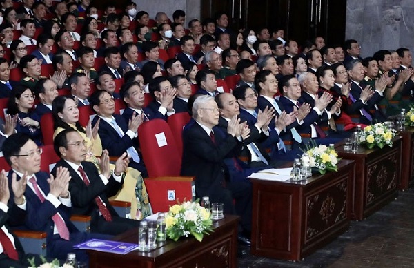 Tham dự Lễ kỷ niệm có Tổng Bí thư Nguyễn Phú Trọng; nguyên Tổng Bí thư Nông Đức Mạnh; Chủ tịch nước Nguyễn Xuân Phúc; Thủ tướng Phạm Minh Chính, Nguyên Thủ tướng Nguyễn Tấn Dũng; Chủ tịch Quốc hội Vương Đình Huệ; các nguyên Chủ tịch Quốc hội Nguyễn Văn An; Nguyễn Thị Kim Ngân; Ủy viên Bộ Chính trị, Bí thư Thành ủy Hà Nội Đinh Tiến Dũng; Chủ tịch Ủy ban Trung ương Mặt trận Tổ quốc Việt Nam Đỗ Văn Chiến; cùng nhiều vị lãnh đạo, nguyên lãnh đạo Đảng, Nhà nước, các ban, bộ, ngành, cơ quan Trung ương.