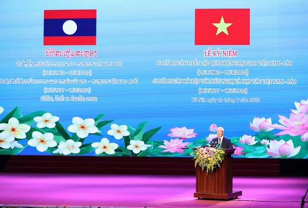 Khẳng định là hai nước láng giềng gần gũi, cùng uống chung dòng nước sông Mekong, cùng tựa lưng vào dãy núi Trường Sơn hùng vĩ, Việt Nam và Lào có truyền thống bang giao hoà hiếu, gắn bó mật thiết với nhau trong suốt chiều dài lịch sử dựng nước và giữ nước của hai dân tộc, Tổng Bí thư Nguyễn Phú Trọng cho biết, cách đây hơn 9 thập kỷ, cùng chia sẻ khát vọng cháy bỏng thoát khỏi ách đô hộ của chế độ thực dân, giành độc lập dân tộc, các nhà cách mạng tiền bối của hai nước đã cùng nhau thành lập Đảng Cộng sản Đông Dương - tiền thân của Đảng Cộng sản Việt Nam và Đảng Nhân dân Cách mạng Lào ngày nay.