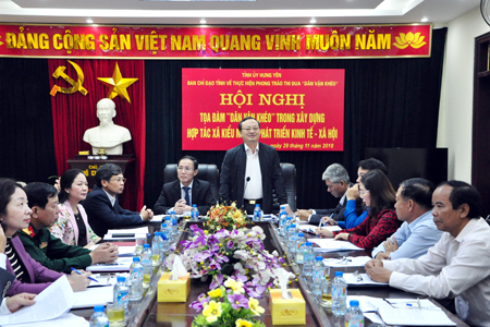 Ngày 29.11, Ban Dân vận Tỉnh ủy tổ chức hội nghị tọa đàm "Dân vận khéo" trong xây dựng hợp tác xã (HTX) kiểu mới để phát triển kinh tế - xã hội. Dự buổi tọa đàm có các đồng chí: Đỗ Tiến Sỹ, Ủy viên BCH Trung ương Đảng, Bí thư Tỉnh ủy, Trưởng đoàn Đại biểu Quốc hội tỉnh; Đoàn Văn Hòa, Ủy viên Ban Thường vụ Tỉnh ủy, Trưởng ban Dân vận Tỉnh ủy; Nguyễn Duy Hưng, Phó Chủ tịch UBND tỉnh.