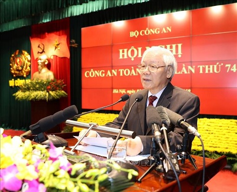 Nhân dịp đầu năm mới 2019, chuẩn bị đón Tết cổ truyền của dân tộc - Xuân Kỷ Hợi, Tổng Bí thư, Chủ tịch nước Nguyễn Phú Trọng chúc toàn thể lực lượng Công an nhân dân Anh hùng, năm mới dồi dào sức khỏe, gia đình hạnh phúc, an khang, thắng lợi.