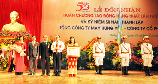 Ngày 14.5, Tổng công ty May Hưng Yên - Công ty cổ phần long trọng tổ chức lễ kỷ niệm 50 ngày thành lập và đón nhận Huân chương Lao động hạng Nhất. Dự lễ kỷ niệm có các đồng chí: Đỗ Tiến Sỹ, Ủy viên BCH Trung ương Đảng, Bí thư Tỉnh ủy, Chủ tịch HĐND tỉnh; Nguyễn Văn Phóng, Phó Bí thư Tỉnh ủy, Chủ tịch UBND tỉnh; đồng chí Hồ Thị Kim Thoa, Thứ trưởng Bộ Công Thương; các đồng chí trong Ban Thường vụ Tỉnh ủy; lãnh đạo Tập đoàn Dệt may Việt Nam…