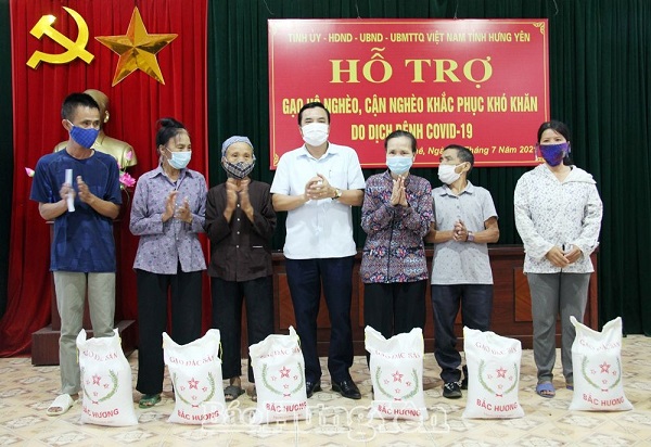 * Ngày 29.7, tại xã Bảo Khê (thành phố Hưng Yên), đồng chí Phạm Huy Bình, Ủy viên Ban Thường vụ Tỉnh ủy, Bí thư Thành ủy Hưng Yên trao gạo của tỉnh hỗ trợ hộ nghèo, hộ cận nghèo trên địa bàn thành phố Hưng Yên nhằm giúp các gia đình khắc phục khó khăn do ảnh hưởng của dịch Covid-19.