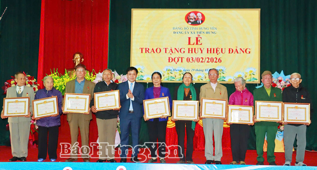 Đợt 3/2, xã Tiên Hưng có 30 đảng viên cao tuổi Đảng được trao Huy hiệu Đảng. Trong đó, có 1 đảng viên được trao Huy hiệu 65 năm tuổi Đảng; 5 đảng viên được trao Huy hiệu 60 năm tuổi Đảng, 6 đảng viên được trao Huy hiệu 55 năm tuổi Đảng; 3 đảng viên được trao Huy hiệu 50 năm tuổi Đảng, 15 đảng viên được trao Huy hiệu 45, 40, 30 năm tuổi Đảng.