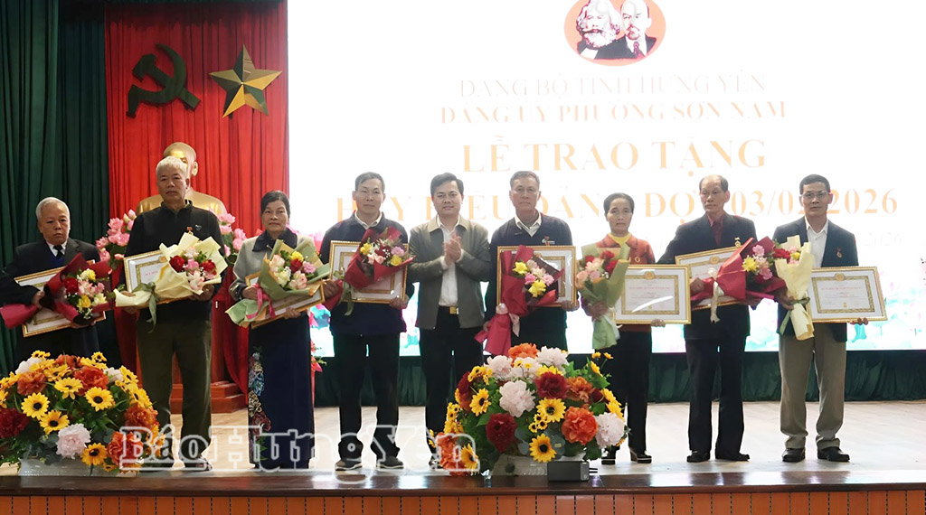 Đợt 3/2 năm nay, Đảng bộ phường Sơn Nam có 26 đảng viên vinh dự được Ban Thường vụ Tỉnh ủy Hưng Yên tặng Huy hiệu Đảng. Trong đó có 1 đảng viên được tặng Huy hiệu 65 năm tuổi Đảng, 5 đảng viên được tặng Huy hiệu 60 năm tuổi Đảng, 1 đảng viên được tặng Huy hiệu 55 năm tuổi Đảng, 4 đảng viên được tặng Huy hiệu 50 năm tuổi Đảng; các đảng viên còn lại được nhận Huy hiệu 45 năm, 40 năm và 30 năm tuổi Đảng.