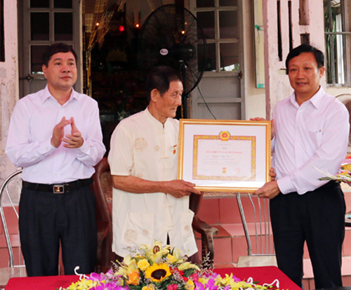 Đồng chí Đặng Minh Ngọc trao Huy hiệu 70 năm tuổi Đảng tặng đảng viên Nguyễn Ngọc Giao