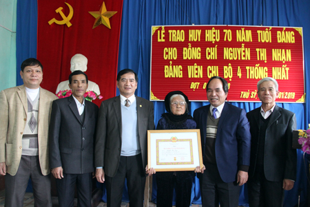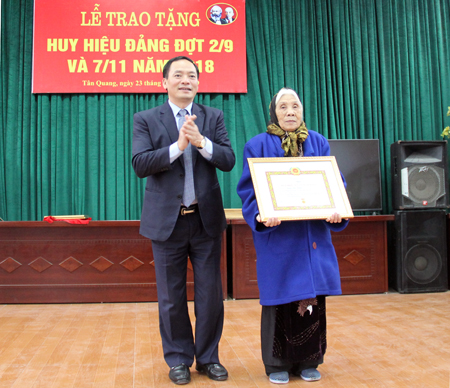 Ngoài đảng viên Quản Thị Sành được tặng Huy hiệu 70 năm tuổi Đảng, Đảng bộ xã Tân Quang còn có 22 đảng viên được Ban Thường vụ Tỉnh ủy tặng Huy hiệu từ 30 năm đến 55 năm tuổi Đảng.