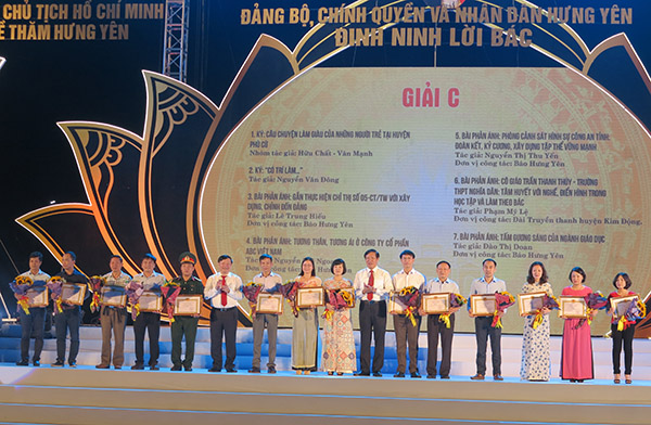 Sau phần giao lưu là phần tổng kết và trao giải Cuộc thi “Sáng tác tác phẩm văn học, báo chí về chủ đề học tập và làm theo tư tưởng, đạo đức, phong cách Hồ Chí Minh” tỉnh Hưng Yên năm 2018. Thực hiện Chỉ thị số 05-CT/TW của Bộ Chính trị về đẩy mạnh học tập và làm theo tư tưởng, đạo đức, phong cách Hồ Chí Minh; nhằm khuyến khích, động viên, cổ vũ mọi cán bộ, đảng viên và tầng lớp nhân dân, nhất là các nhà văn, nhà báo sáng tác những tác phẩm có giá trị cao viết về tư tưởng, đạo đức, phong cách Hồ Chí Minh, ngày 22/5/2018, Tỉnh ủy đã ban hành kế hoạch phát động tổ chức cuộc thi “Sáng tác tác phẩm văn học, báo chí về chủ đề học tập và làm theo tư tưởng, đạo đức, phong cách Hồ Chí Minh” tỉnh Hưng Yên. Sau 01 năm phát động, đã có 127 tác phẩm ở các thể loại văn học, báo chí tham dự cuộc thi. Ban Giám khảo đã chấm điểm, lựa chọn 09 giải B, 07 giải C và 11 giải Khuyến khích. Việc trao giải nhân dịp kỷ niệm ngày sinh nhật Bác thể hiện sự ghi nhận, biểu dương của Tỉnh ủy đối với các tác giả, đội ngũ văn nghệ sỹ, nhà báo và các tác phẩm văn học, báo chí có giá trị sáng tác về chủ đề học tập và làm theo tư tưởng, đạo đức, phong cách Hồ Chí Minh, đồng thời nêu gương, tạo sức lan tỏa những điển hình tiên tiến, gương người tốt việc tốt trên mọi lĩnh vực và đời sống xã hội của tỉnh nhà.