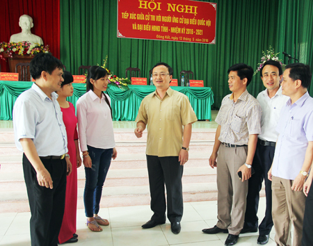 Tại buổi tiếp xúc, các cử tri đã được nghe tiểu sử tóm tắt của các ứng cử viên đại biểu Quốc hội khóa XIV và đại biểu HĐND tỉnh nhiệm kỳ 2016 – 2021; chương trình hành động của từng ứng cử viên nếu trúng cử là đại biểu Quốc hội, đại biểu HĐND tỉnh. Các cử tri đánh giá cao chương trình hành động của các ứng cử viên; mong muốn những người được tín nhiệm bầu làm đại biểu Quốc hội khóa XIV, đại biểu HĐND tỉnh nhiệm kỳ 2016 – 2021 sẽ thực hiện tốt chương trình hành động của mình, đặc biệt quan tâm tới lĩnh vực nông nghiệp, nông dân, nông thôn, việc làm và môi trường.
