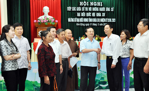 * Ngày 11.5, các ứng cử viên đại biểu Quốc hội khóa XIV thuộc đơn vị bầu cử số 1 và ứng cử viên đại biểu HĐND tỉnh nhiệm kỳ 2016 - 2021 thuộc đơn vị bầu cử số 4 của tỉnh có buổi tiếp xúc với cử tri huyện Kim Động. Tham dự buổi tiếp xúc có các đồng chí: Đỗ Tiến Sỹ, Ủy viên BCH Trung ương Đảng, Bí thư Tỉnh ủy, Chủ tịch HĐND tỉnh; Trần Quốc Toản, Ủy viên Ban Thường vụ Tỉnh ủy, Chủ nhiệm Ủy ban Kiểm tra Tỉnh ủy.