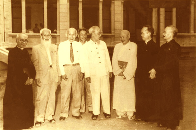 Chủ tịch Hồ Chí Minh nói chuyện thân mật với các đại biểu tôn giáo trong Quốc hội nước Việt Nam Dân chủ Cộng hòa năm 1960 - Ảnh www.baochinhphu.vn