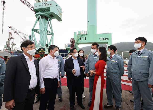Ủy viên Bộ Chính trị, Thủ tướng Chính phủ Phạm Minh Chính thăm nhà máy đóng tàu Huyndai (Hàn Quốc) tại Khu kinh tế Vân Phong, tỉnh Khánh Hòa _Ảnh: TTXVN