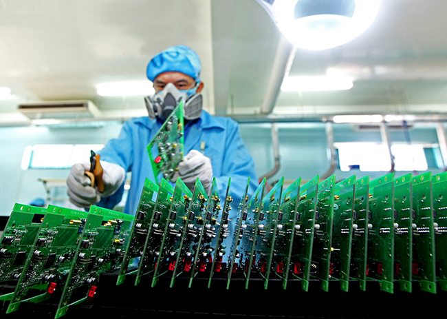 Sản xuất công tơ điện tử thông minh tại Công ty Công nghệ thông tin điện lực miền Trung, Tổng Công ty Điện lực miền Trung _Ảnh: TTXVN