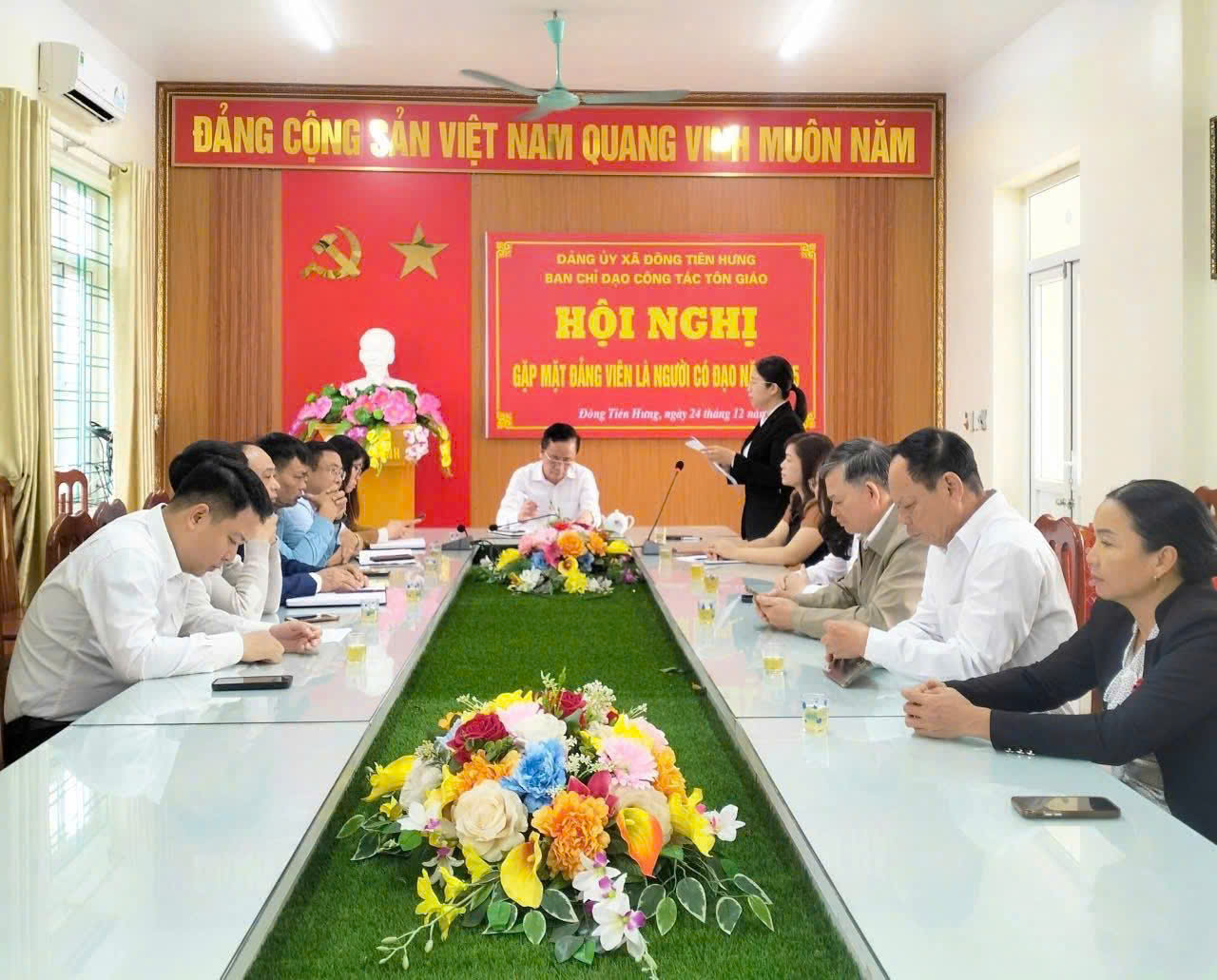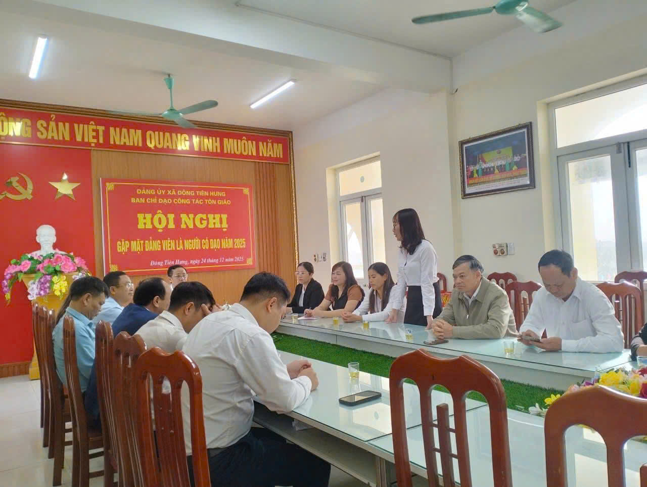 Sáng ngày 24/12/2025, Ban Chỉ đạo công tác Tôn giáo xã Đông Tiên Hưng tổ chức hội nghị gặp mặt đảng viên là người có đạo nhân dịp Lễ Giáng sinh năm 2025. Dự hội nghị có đồng chí Nguyễn Khắc Lập, Phó Bí thư Thường trực Đảng uỷ, Trưởng Ban chỉ đạo công tác Tôn giáo; các đồng chí thành viên Ban chỉ đạo công tác Tôn giáo, đại diện lãnh đạo các ban, ngành, đoàn thể cùng các đồng chí đảng viên là người theo đạo Công giáo trong đảng bộ xã. Hiện nay, xã Đông Tiên Hưng có 01 giáo xứ với 04 giáo họ, hơn 800 giáo dân, 06 đảng viên là người theo đạo Công giáo sinh hoạt tại đảng bộ, 05 đảng viên là người theo đạo Công giáo sinh hoạt đảng nơi cư trú trên địa bàn xã.