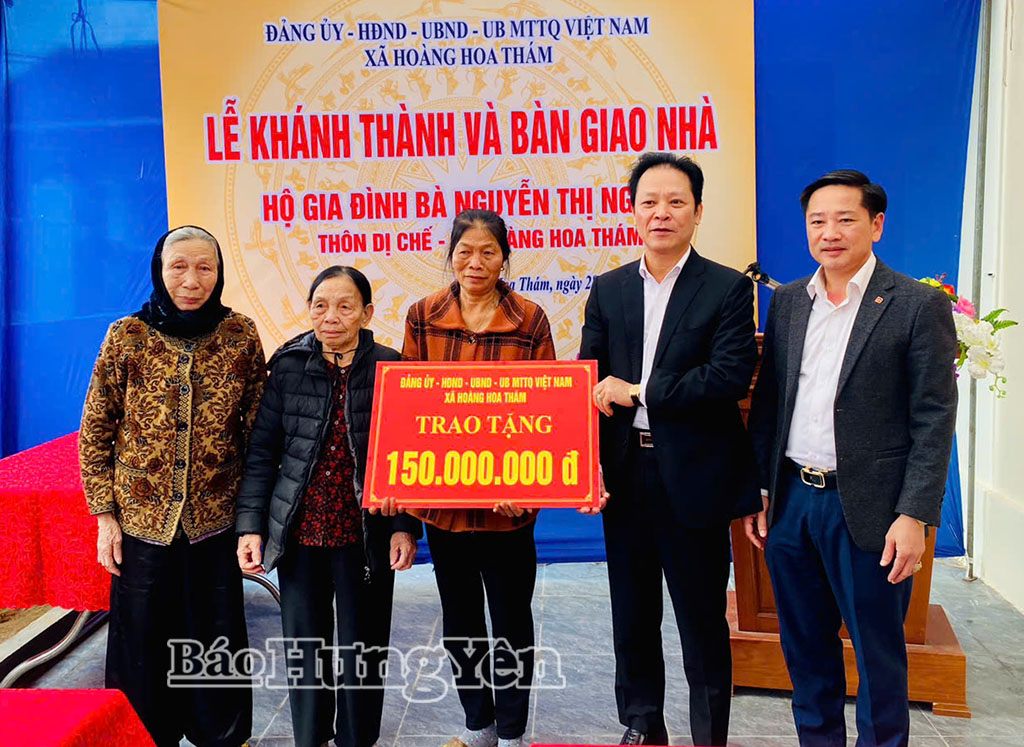 Gia đình bà Nguyễn Thị Nguyệt, ở thôn Dị Chế, thuộc diện hộ có hoàn cảnh khó khăn, nhiều năm qua sống trong căn nhà cũ đã bị xuống cấp nhưng không đủ khả năng để sửa chữa hay xây mới. Trước hoàn cảnh đó, xã Hoàng Hoa Thám đã trích từ Quỹ "Vì người nghèo" của xã số tiền 150 triệu đồng để hỗ trợ bà Nguyệt xây nhà ở.
