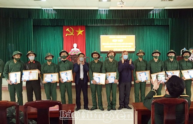 Lãnh đạo xã Lệ Xá tặng giấy khen và quà cho thanh niên lên đường nhập ngũ năm 2022