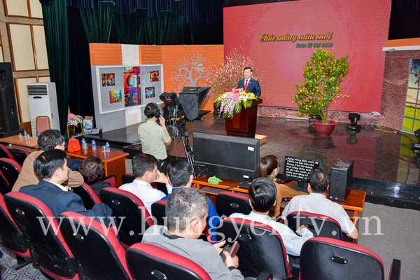 Chiều 1/2, PBT Tỉnh ủy, Chủ tịch UBND tỉnh Hưng Yên Nguyễn Văn Phóng đến trường quay S9 Đài PT&TH Hưng Yên thu lời chúc tết cán bộ, chiến sỹ, nhân dân tỉnh Hưng Yên dịp tết Kỷ Hợi 2019.