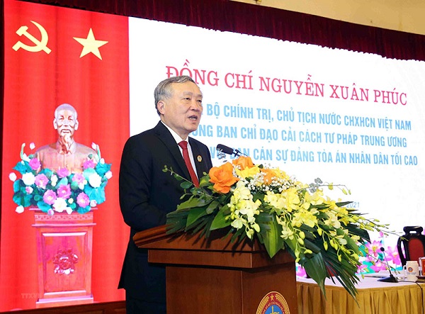 Thay mặt lãnh đạo Đảng, Nhà nước, Chủ tịch nước biểu dương sự nỗ lực, cố gắng và kết quả công tác của các tòa án: đã thực hiện tốt chức năng, nhiệm vụ xét xử, thực hiện quyền tư pháp, bảo vệ công lý, quyền con người, lợi ích hợp pháp của cơ quan, tổ chức, cá nhân, qua đó góp phần củng cố niềm tin của người dân vào một nền tư pháp công bằng, nghiêm minh, bảo đảm thượng tôn pháp luật; kiềm chế sự gia tăng của tội phạm, thúc đẩy sự phát triển lành mạnh của các giao dịch dân sự, kinh tế; bảo vệ cuộc sống bình yên cho nhân dân. Tổ chức xét xử thành công các vụ án tham nhũng lớn, tham gia tích cực, có hiệu quả vào cuộc đấu tranh phòng, chống tham nhũng.